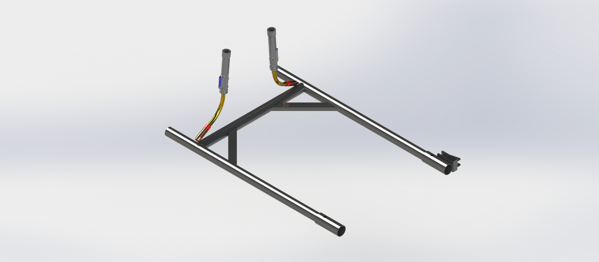 Makine, piyasada kullanılan farklı ölçülerdeki H tipi iskelelerin üretimine uygun akıllı fikstür sistemi ile tasarlanmıştır.